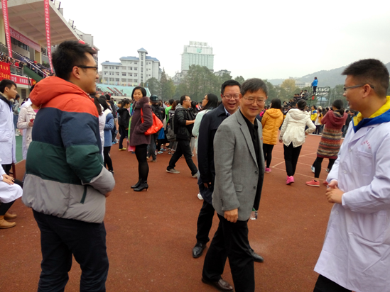 运动会开幕式结束后,黎奇升、龙先琼副校长,学工部周华忠部长、我院陈正英书记、谭敦勇院长等领导亲临活动现场看望志愿者,勉励同志们用推拿保健服务群众的成果来检验医学院“三严三实”专题教育的成效。