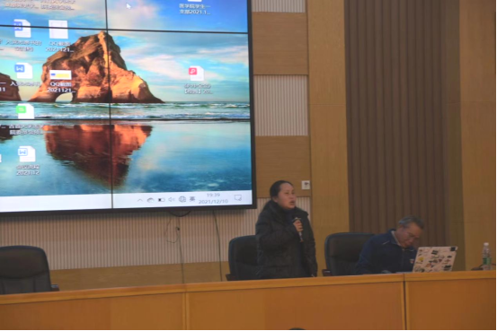 医学院副书记张旺强调要在学深悟透上下功夫,用心读好学好用好这份党和人民共同创造的精神财富,以“十个坚持”为脉络提纲,深刻认识党的百年奋斗的重大历史意义,尤其是深入学习习近平新时代中国特色社会主义思想的时代意义、理论意义、实践意义。