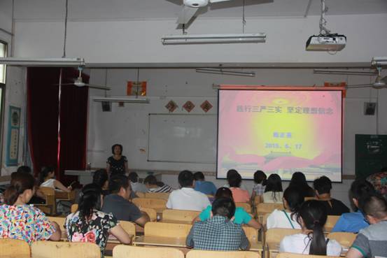 为深入学习贯彻党的十八大和十八届三中、四中全会精神,深入学习贯彻习近平同志系列重要讲话精神,对照“严以修身、严以用权、严以律己,谋事要实、创业要实、做人要实”的要求,聚焦对党忠诚、个人干净、敢于担当,把思想教育、党性分析、整改落实、立规执纪结合起来,紧紧围绕协调推进“四个全面”战略布局,加强党员党性修养、坚持实事求是,改进工作作风,进一步巩固和拓展党的群众路线教育实践活动成果,按照学校党委的统一安排和部署,2015年6月17日,在老校区1202教室,医学院党委书记陈正英教授给医学院全体教工党员和部分学生党员代表上了一堂《践行“三严三实”,坚定理想信念》的专题党课。