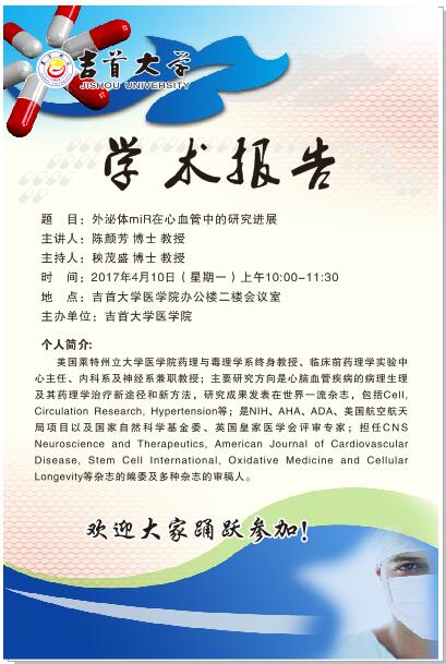 当前位置: 首页» 科学研究» 学术活动 外泌体MIR在心血管中的研究进展 时间:2017-04-06 点击: 作者:佚名 上一条:美国莱特州立大学陈颜芳教授来院作学术报告 下一条:校级科技创新团队系列学术沙龙 【关闭】