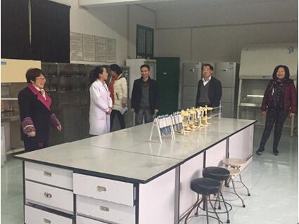 图为院领导一行到基础医学实验室检查