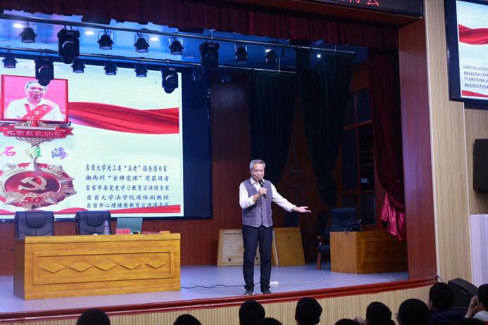 石维海紧紧围绕“铭记抗战历史”“担当教育强国使命”“扎根吉首大学”三个核心层面,为新生展开入学教育讲座。讲座中,他通过列举日军侵华造成的军民伤亡、财产损失等关键数据,系统阐释抗战精神内涵,并强调铭记历史的根本目的在于传承红色精神、助力民族复兴。随后,他以“爱国三问”为切入点,深入解读教育强国建设的规划目标,引导新生树立时代责任意识。最后,他回顾吉首大学发展历程,勉励全体同学牢记“以人名校,以业报国”的校训精神,在校园中成长成才,勇担时代使命。