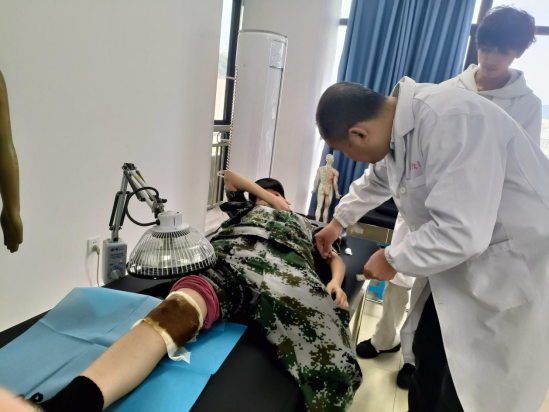 活动现场,志愿者们协助邓瑜老师为伤员提供了针灸、推拿及药物贴敷等服务,以实际行动践行了“医者仁心”的誓言,为军训中的新生们送上了一份特别的关爱。志愿者们凭借扎实的专业基础和亲切的服务态度,赢得了新生们的广泛赞誉和感谢。许多新生表示,通过此次义诊活动,他们不仅深切体会到中医的神奇魅力,更深刻感受到了来自学长学姐的关爱。