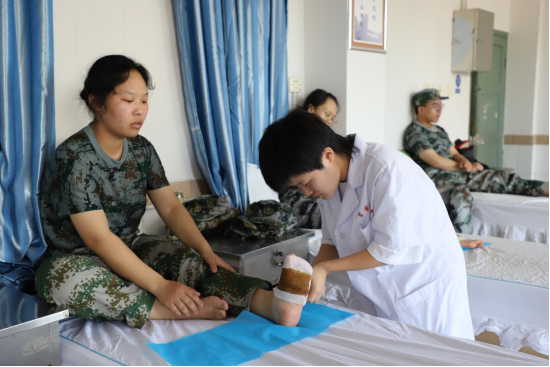 服务期间,志愿者们牺牲自己的国庆假期,在邓瑜老师的指导下为在军训中受伤的新生提供药物外敷、中医针灸等各项保健服务。他们细致分析伤情,讲解注意事项,耐心解答军训伤员的各种问题。在老师与志愿者们的悉心诊治下,军训伤员的伤情恢复良好。