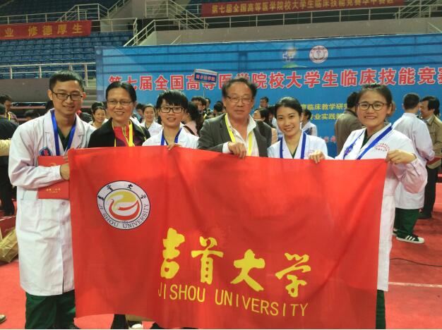 竞赛采用 “站点式”、“赛道式”与“单站式”相结合的竞赛模式,由我校医学院2011级临床医学专业张术恋、蔡梓歆、伍梦娟及黎梅组成的吉首大学代表队通过顽强拼搏获得团体二等奖。