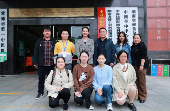 图为检查组老师与常德市中医医院科教老师、实习生合影