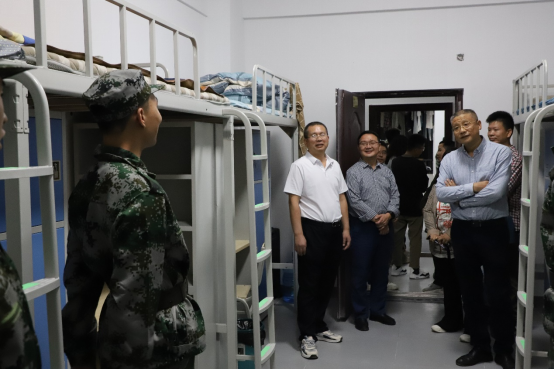 (图为学院领导老师走访大田湾校区新生宿舍)