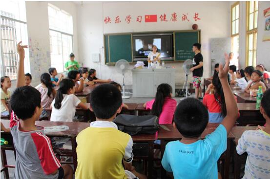 7月11日上午,义诊活动进行的同时,支教招生也在河溪镇小学如火如荼地进行。志愿者们对当地的学生进行团队课程的介绍,其中以卫生健康教育为主要宣传方面。
