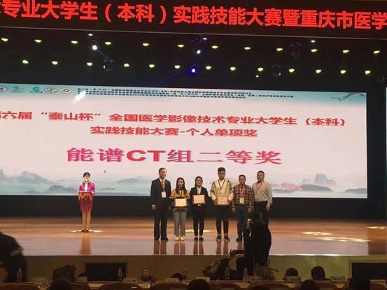 2019年10月18日至20日,第六届“泰山杯”全国医学影像技术专业大学生(本科)实践技能大赛在重庆医科大学附属第一医院举行。本次比赛由中华医学会、中华医学会影像技术分会主办,重庆医科大学附属第一医院、重庆市医学会影像技术专委会以及中华医学会影像技术分会教育分组承办,人民卫生出版社共同协办。经过激烈角逐,我校戴颖同学获得理论考试二等奖,张倩倩同学获得能谱CT二等奖,我校附属黔江医院(重庆市黔江中心医院)放射科李小军老师获青年教师微课大赛三等奖。