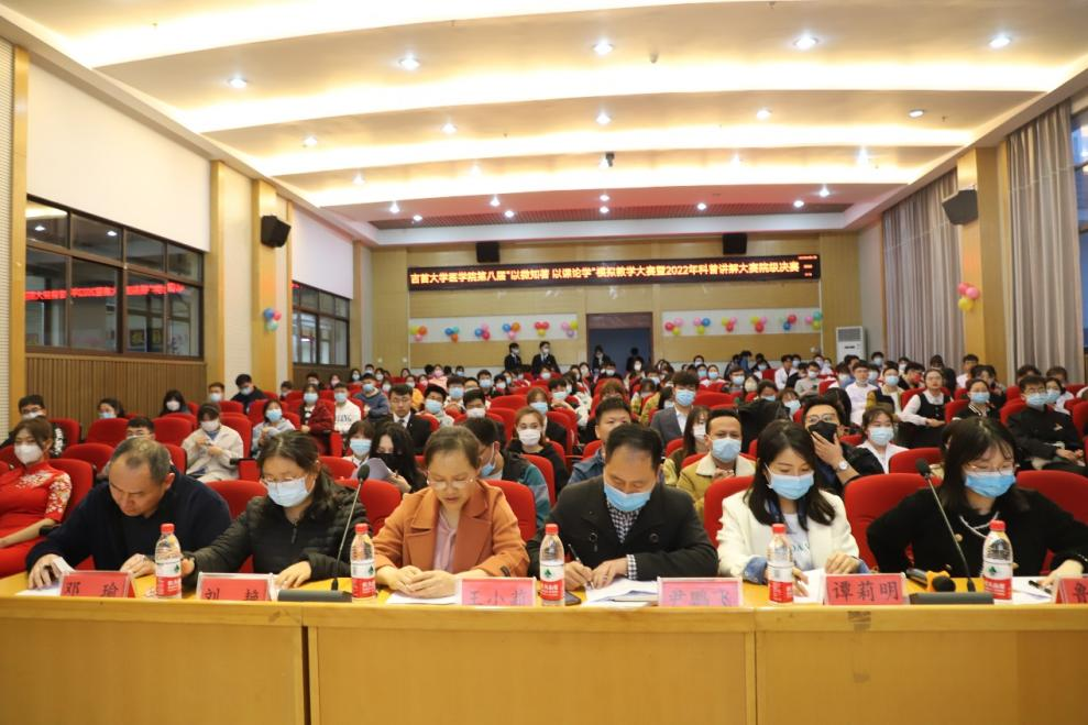 (通讯员吴晋 王彬彬)为诠释我院“仁心仁术·大医精诚”育人理念,加强学生思想道德建设,结合专业特色提升学生综合素养。4月17日晚,我院第八届“见微知著·以课论学”模拟教学大赛暨科普讲解大赛决赛在大田湾校区2609多功能报告厅顺利举行。校教务处副处长尹鹏飞、校科技处鲁颖、医学院王小莉、刘艳、谭莉明、邓瑜六名老师担任评委,院党委副书记张旺、副院长李中正以及作品指导老师、学工办、团委老师出席活动现场。