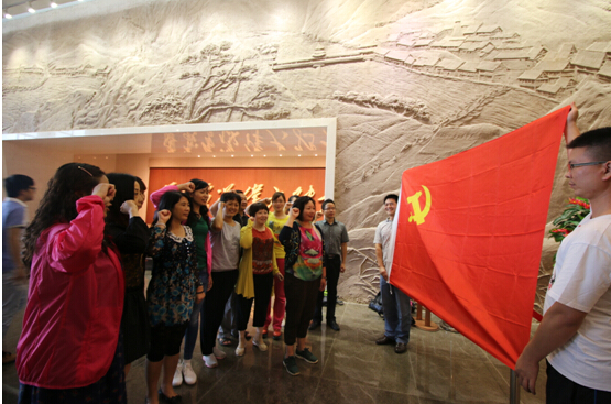 在遵义会议纪念馆大厅,学院党委书记陈正英带领党员同志面向党旗进行庄严宣誓。通过重温入党誓词,使大家心灵得到又一次洗礼,庄严场面、催人奋进,大家纷纷表示:要珍惜幸福生活,反腐倡廉,立足本职,坚定信念,勇往直前。