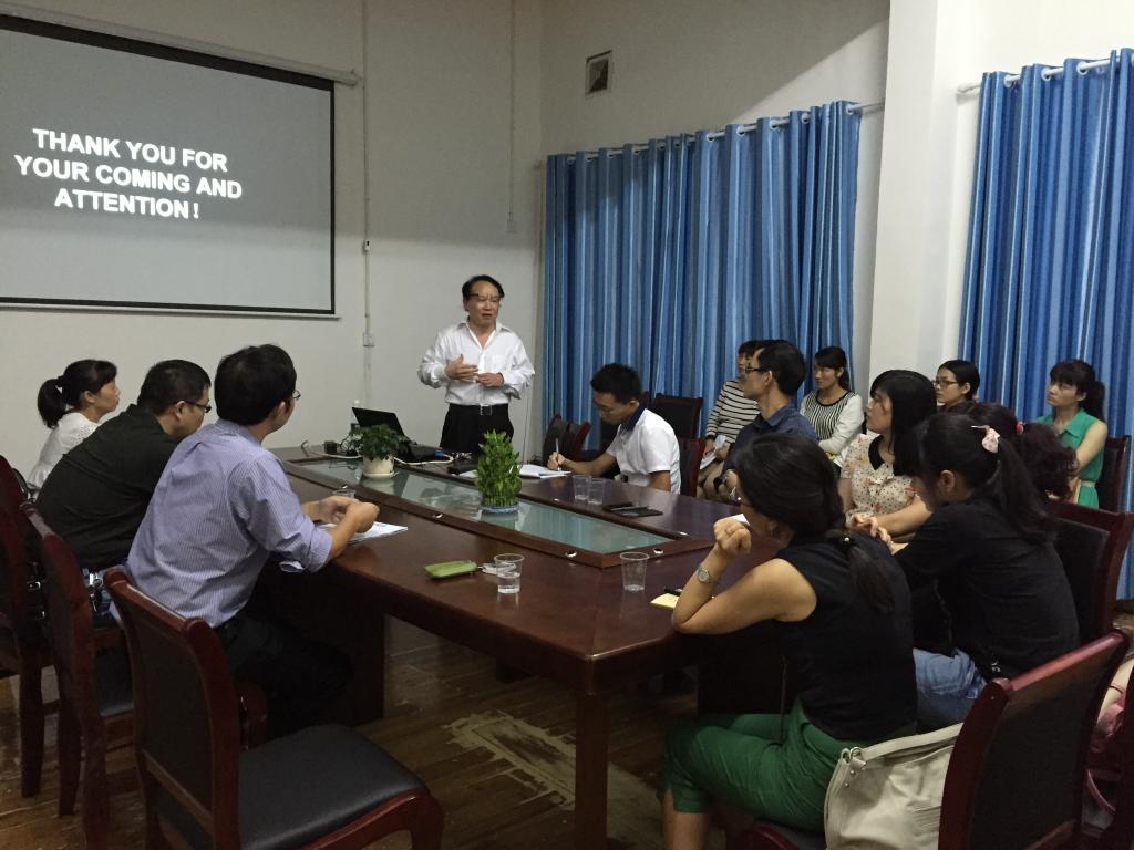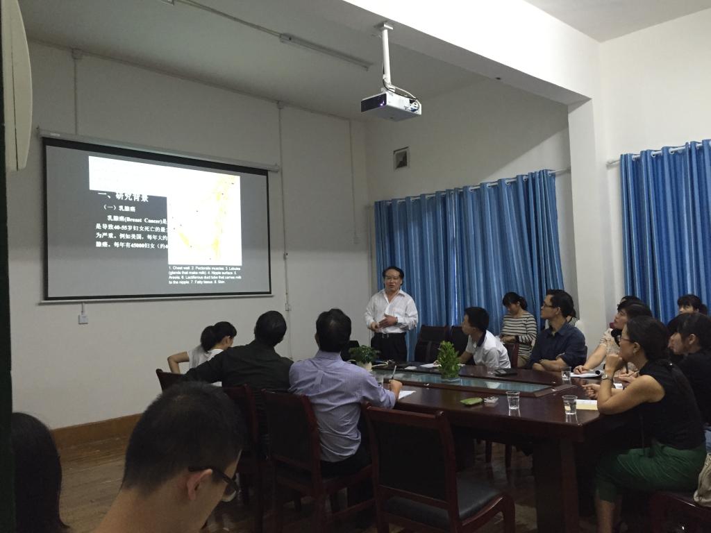 2015年9月23日在吉首大学医学研究中心学术会议室举行了本学期的首场学术报告会。主讲人为医学院院长谭敦勇教授,学术报告题目为“变异催乳素受体与乳腺癌”。由科研办秘书楚婷老师主持,有来自医学院的老师和学生共20余人参加。