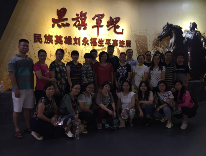 第一站是广西壮族自治区博物馆“黑旗军魂——刘永福生平事迹展”。刘永福是我国近代著名的民族英雄,英雄事迹被选入我国中小学历史教材,受到全国各族人民的尊敬和景仰。展览分黑虎出山、援越抗法、抗日保台、暮年丹心、世代流芳五个部分,以大量的文字、图片史料,配以精选的文物、视频,全面反映刘永福传奇英勇的一生。党员教师们通过参观展览,深切感受到了刘永福抵御外敌的爱国主义精神、爱兵爱民的品质、戒子重教的情怀、勤勉廉政的气节。