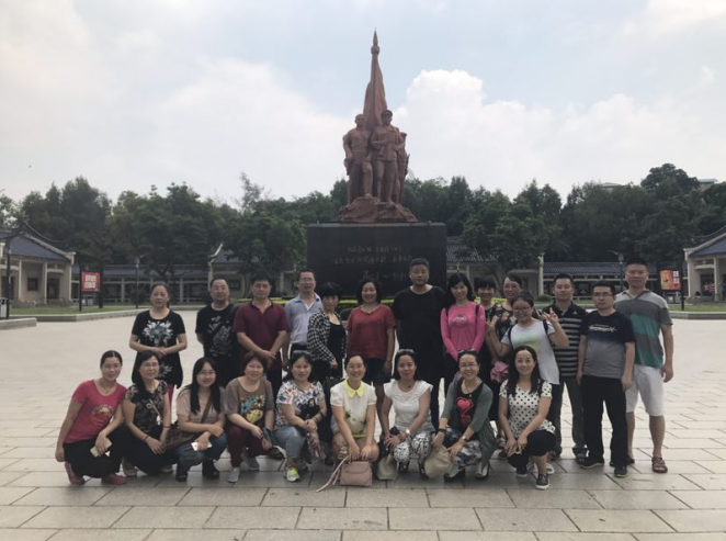 第二站是李明瑞、韦拔群烈士纪念馆,该馆是广西壮族自治区爱国主义教育基地,展出了李明瑞、韦拔群烈士的生平事迹,陈列了234件文物、图片和史料,真实生动地再现了80多年前中国工农红军的优秀将领,红七军、红八军总指挥李明瑞和壮族人民的优秀儿子、卓越的农民运动领导人韦拔群英勇战斗的光辉革命历程。纪念馆外还有烈士纪念碑,参观学习了纪念馆,党员教师们怀着无比崇敬的心情在烈士纪念碑前合影留念。