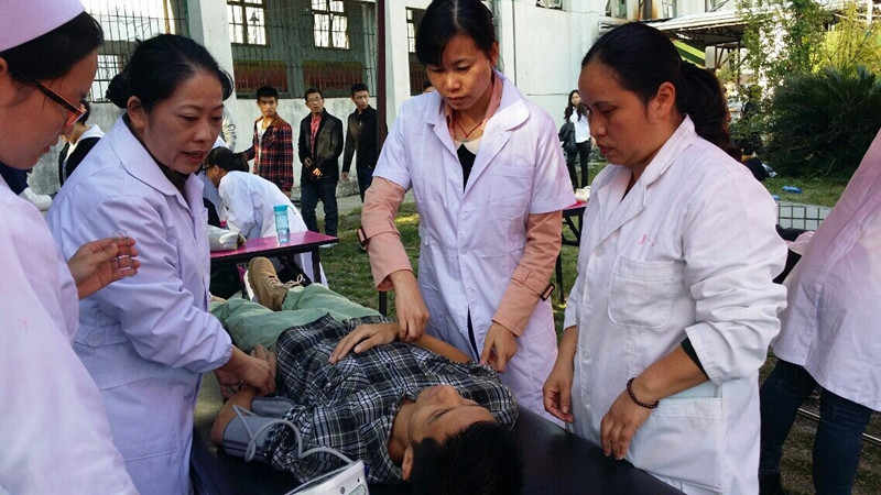 (教工党员教师对突发低血糖晕厥的礼仪队员积极救护)