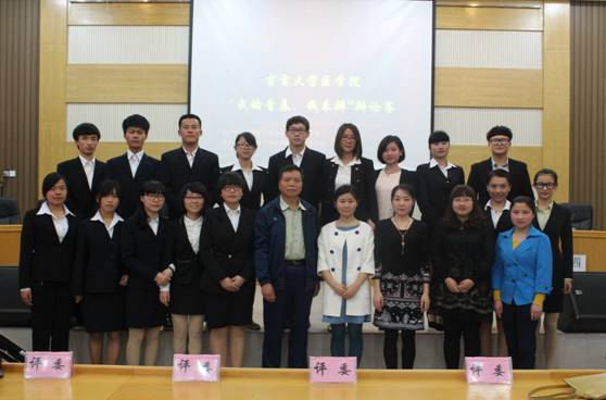 我院“三走”系列活动之一的“我的大学,我来辩”辩论赛决赛于5月18日上午在大田湾校区预科大楼多功能报告厅隆重举行。校关工委石维海老师、马克思主义管理学院王飞霞老师以及我院刘盈盈、陈诗韵、罗莉丹三位老师应邀出席了本次比赛并担任评委。