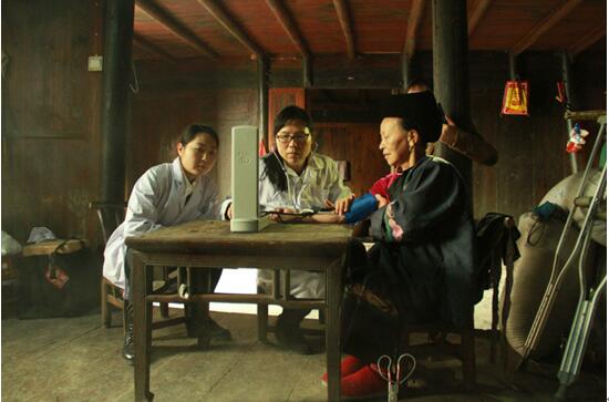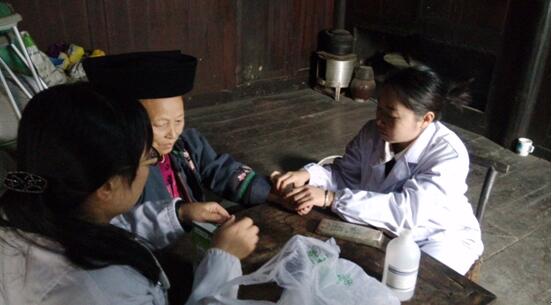 陈正英一行进村简短的休整后,在驻村工作队员的带领下,兵分两路,一队由陈书记带领医疗队老师对石照荣夫妇、石妹、龙八妹等7户村民进行检查治疗。
