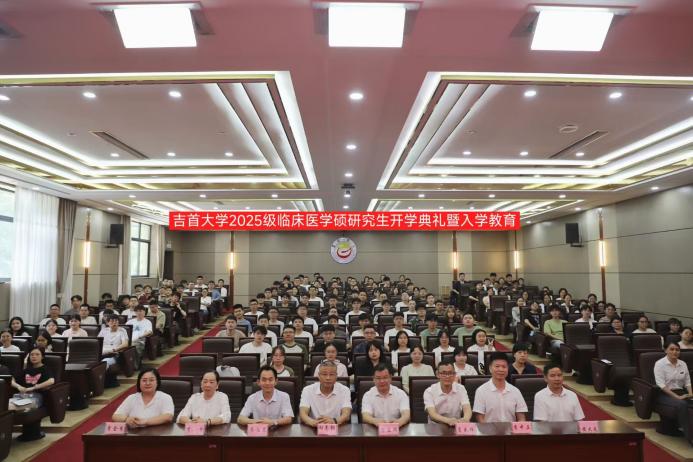 吉首大学党委委员、副校长方东辉,医学院党委书记向志钢,院长李先辉,副院长李中正、副书记李芳,副院长黄大元、李金秀,研究生院副院长廖文虎及硕士生导师代表杨梅松竹出席,全体2025级临床医学专硕新生参加。活动由副院长李金秀、教师王本周分阶段主持。