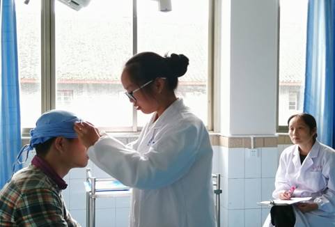 图片决赛选手进行头部伤口包扎操作