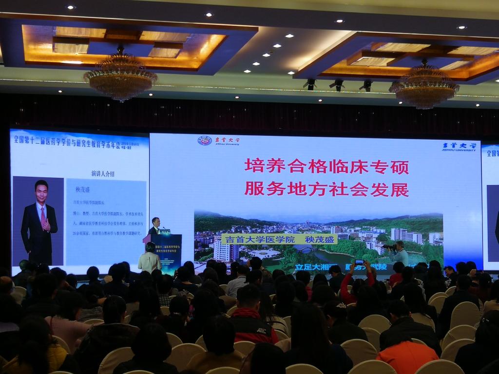 我校医学院副院长秧茂盛教授应邀在大会上就地方院校医学研究生人才培养做题为《培养合格临床专硕服务地方社会发展》的大会主题报告,从临床医学专业学位研究生教育概况,我校实施研究生临床疾病诊治能力、临床科学研究能力的做法和成效等三个方面进行汇报,报告得到了与会代表的好评。