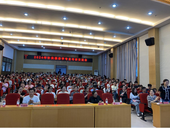 医学院党委委员、副院长李中正,中医学系副主任邓瑜,中医基础教研室主任刘亮晶,院学生第五党支部书记王冰卉,中医学系专任教师张绍梅、谭锦阳、刘盈盈、张罗琴,以及针灸推拿学专业在校学生500余人参加了本次活动。交流会同时开展线上直播,在外地实习的同学也积极参与线上学习。交流会由2022级针灸推拿学1班张雨豪与2022级针灸推拿学2班杨雨琪共同主持。