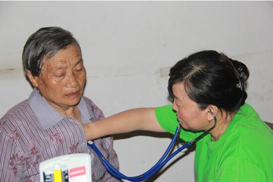 图为张钰华老师为张婆婆体检(蒋丽君摄)