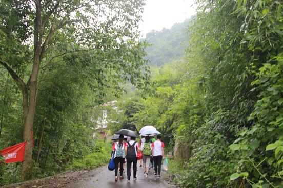 志愿者们冒着暴雨前行,5.5公里的行程,两个小时的跋涉,团队终于到达岩排村。在途中遇到的热心居民告诉我们,这个村子大多数为空巢老人和留守儿童,那些年轻力壮的都出去打工去了。